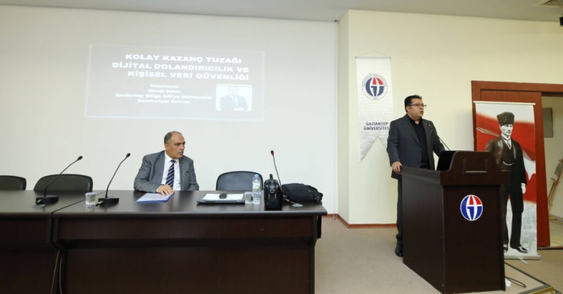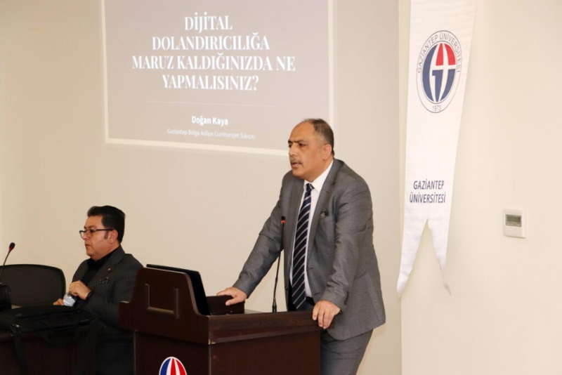 Gaziantep Üniversitesi (GAÜN) Sosyal Bilimler Meslek Yüksekokulu tarafından düzenlenen “Çarşamba Konferansları” kapsamında, son yıllarda en sık yaşanan dolandırıcılık türü olan IBAN dolandırıcılığı ve dijital dünyada artan diğer dolandırıcılık risklerine dikkat çekmek amacıyla önemli bir etkinlik gerçekleştirildi.